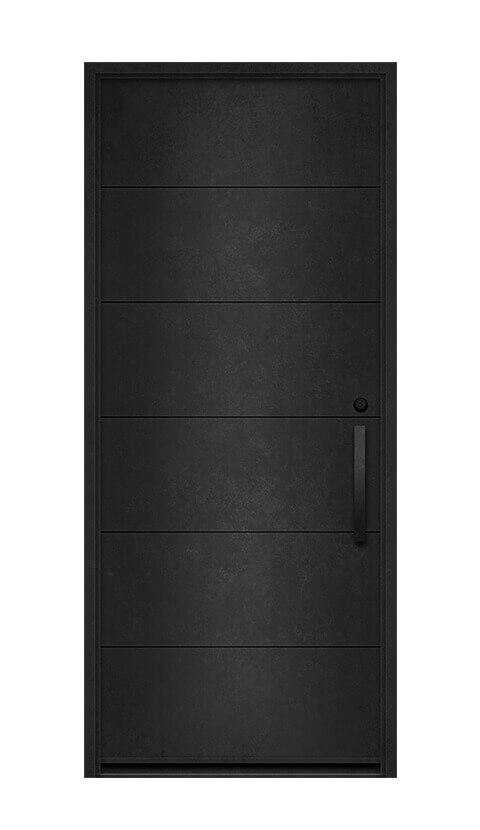 The Barreld Curved door features smooth, horizontal paneling with a gentle convex profile, offering an understated statement of strength and sophistication.