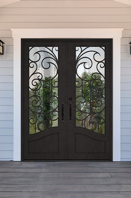 The France Door merges romantic iron patterns with architectural balance, capturing the soul of a Parisian courtyard or countryside manor.