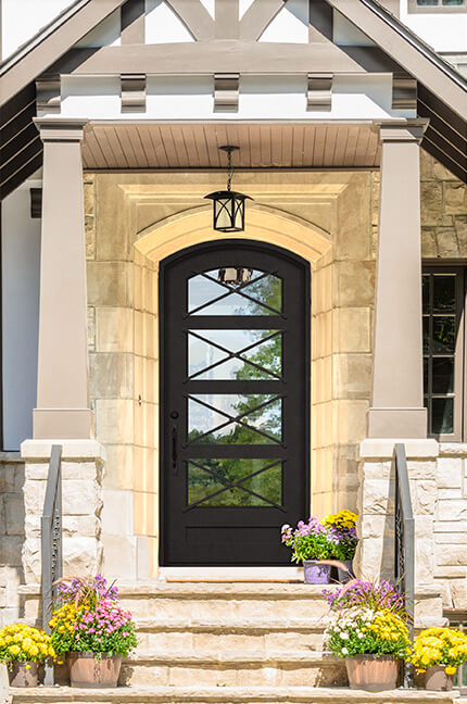 The Siena Door reflects Tuscan roots, defined by hand-forged ironwork and rustic symmetry. Perfect for villas, garden homes, or properties with aged stone and terracotta accents.
