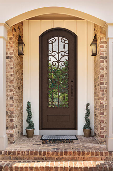 The Spain Door embraces earthy design and expressive curves, evoking Spanish revival homes and hacienda-style architecture. A bold and beautiful entrance to any warm-weather retreat.