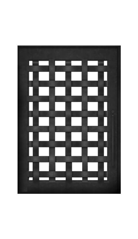 The Tissue Door by Magnolia Doors features a unique woven steel pattern that adds dynamic visual interest and architectural texture to any entryway. Its interlaced grid design evokes a handcrafted, basket-weave aesthetic while maintaining the robust durability Magnolia is known for.